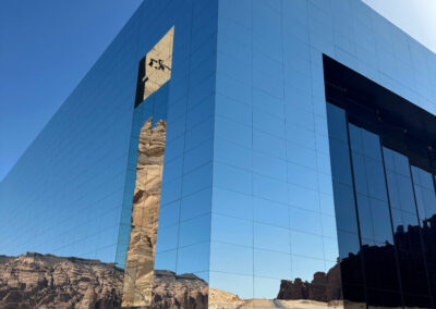 En contraste con la antigüedad de Hegra, Maraya representa la visión contemporánea de AlUla. Este edificio revestido por más de nueve mil metros cuadrados de espejos, el más grande del mundo, se funde literalmente con el paisaje.